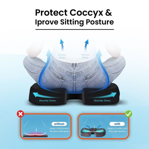 - Ergonomic support: Designed as an ergonomic seat cushion and ergonomic cushion for lower back pain to promote posture
