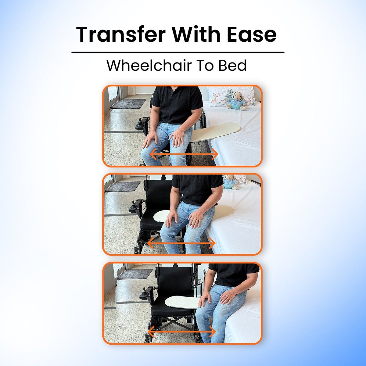 As a sliding transfer board, it minimises friction and effort — making it perfect as a transfer board for elderly, a transfer board for disabled, and a dependable transfer board for wheelchair users. It offers a safer alternative to a traditional plastic transfer board.
