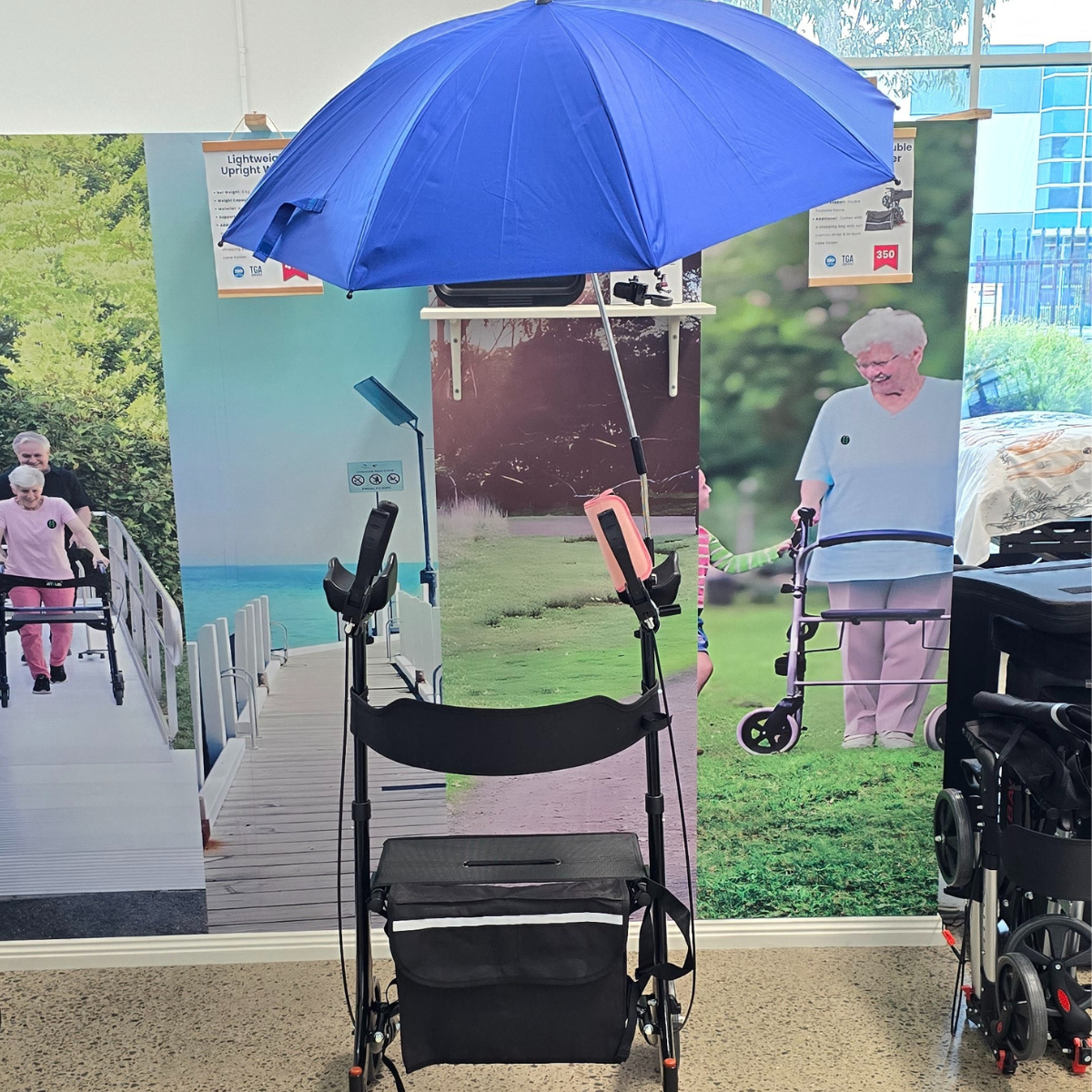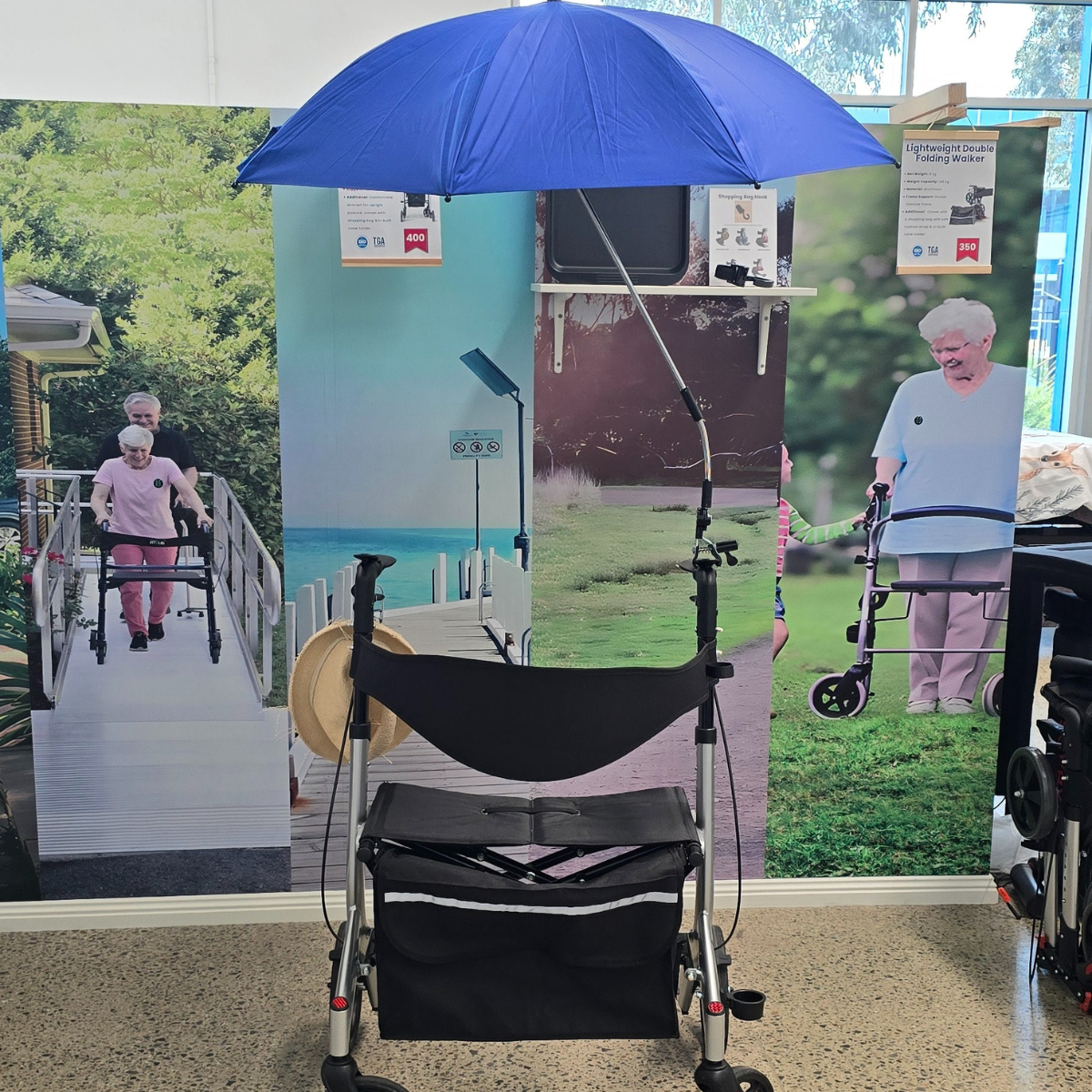 Trusted by individuals seeking a practical wheelchair or rollator umbrella, it also includes a stable walker umbrella holder that keeps your hands free for safe control of your mobility aid. Its smart, secure mounting system makes it a reliable companion for everyday use.