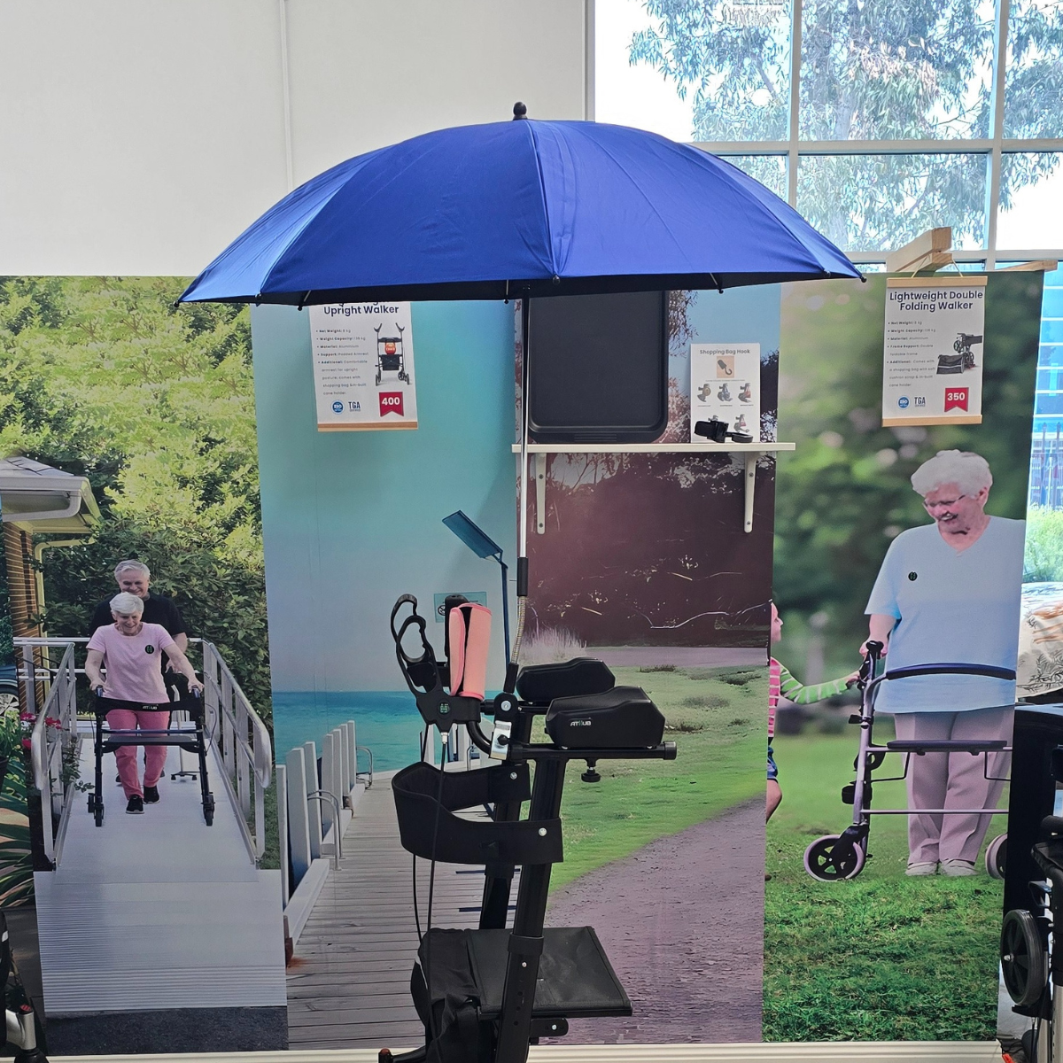 Face the outdoors with confidence using the Aitop WalkShade Pro, a high-quality umbrella for walker users who need reliable cover in any condition. This top-grade mobility aid umbrella delivers waterproof protection and UPF 50+ shading, making it a true hands-free umbrella for walkers. Whether you need rain protection for rollators or complete weather protection for rollators and walkers, this design keeps you secure through every season.